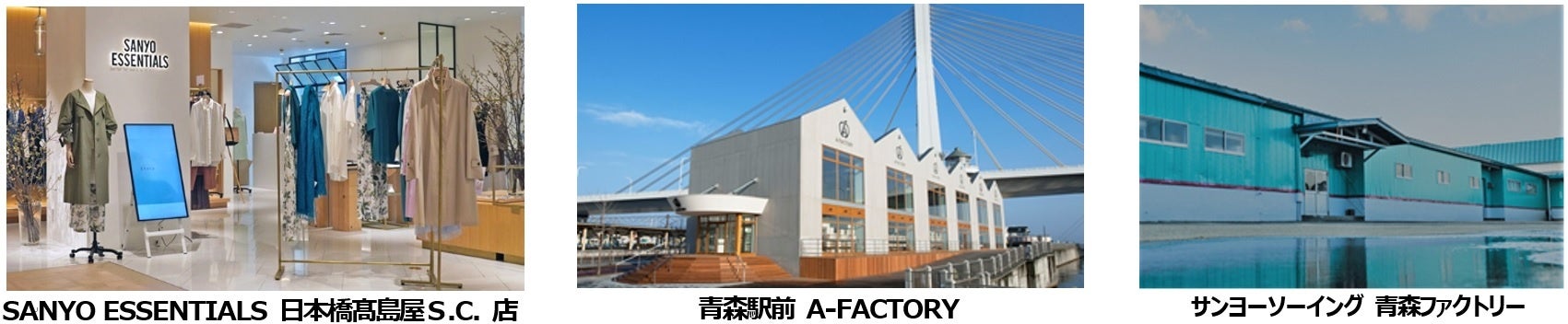 また『Makuake』サイト上での展開に加えて、東京・青森の計3か所(「SANYO ESSENTIALS日本橋髙島屋S.C. 店」、青森駅前「A-FACTORY」、「サンヨーソーイング 青森ファクトリー」)に、試着してサイズや色味などをご確認いただける展示スペースを8月26日(土)より順次設置いたします。