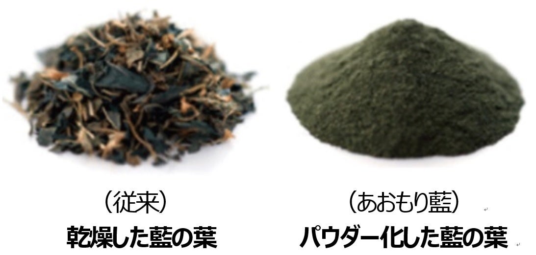 「あおもり藍」の藍染は、従来の技法をイノベーションし、乾燥した藍葉をパウダー化するという独自の手法を用いた、抗菌性・防臭性などにも優れた新世代の藍染です〔※4〕。