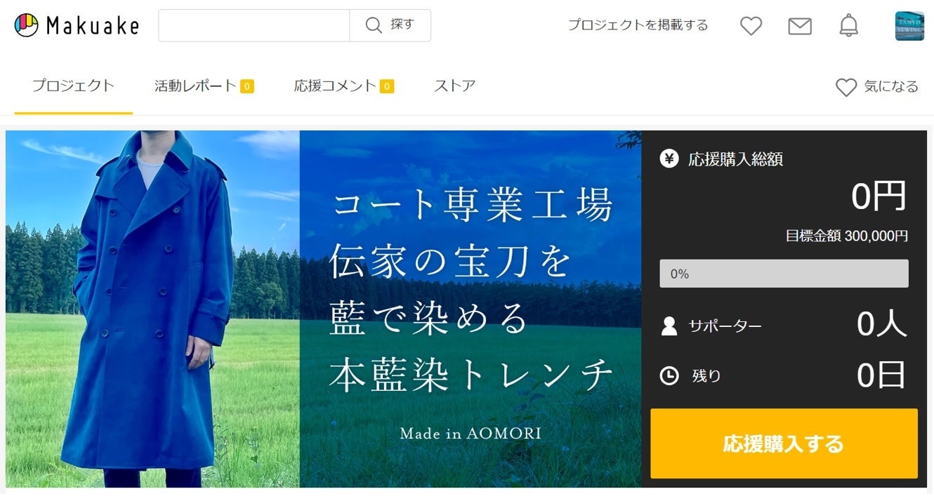 青森産のこだわりのつまった「本藍染トレンチ」の販売は、“新しいものに出会いたい”という方に広く知ってもらうことを目的に、応援購入サービス『Makuake』サイト上にて8月27日(日)~9月29日(金)の期間展開し、受注生産にて販売いたします。