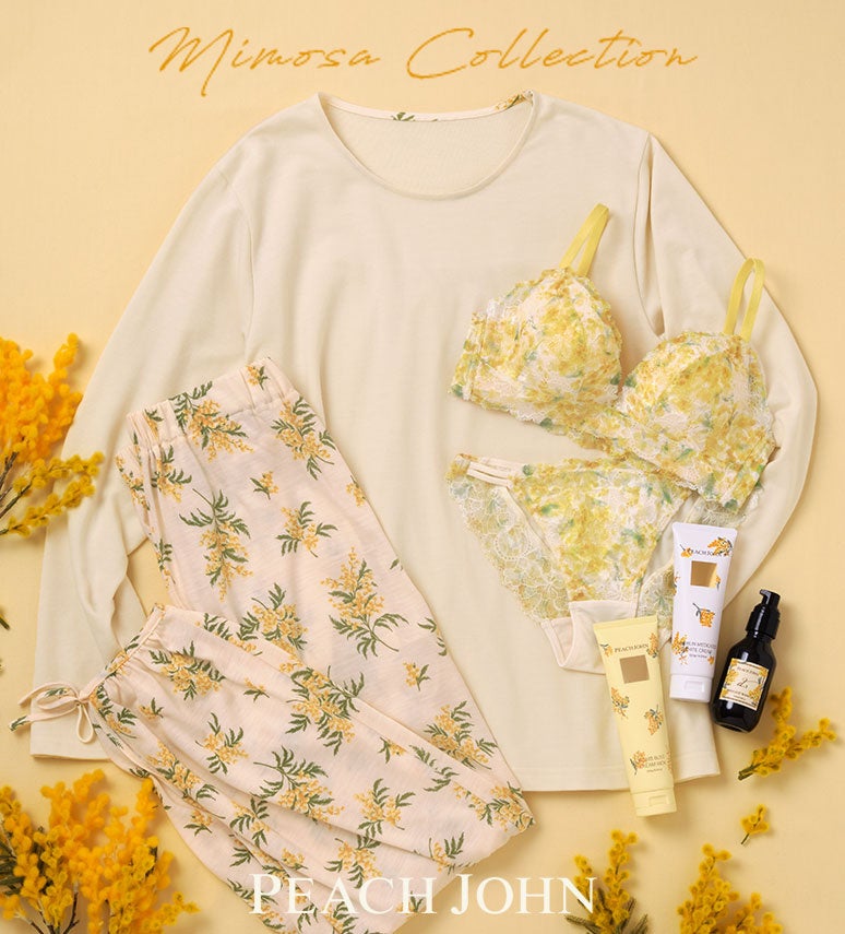 PEACH JOHNから春の訪れを楽しめる、毎年大好評のミモザコレクションが登場!あの大ヒットブラやパジャマ、パーツケアアイテムの限定コレクション。
