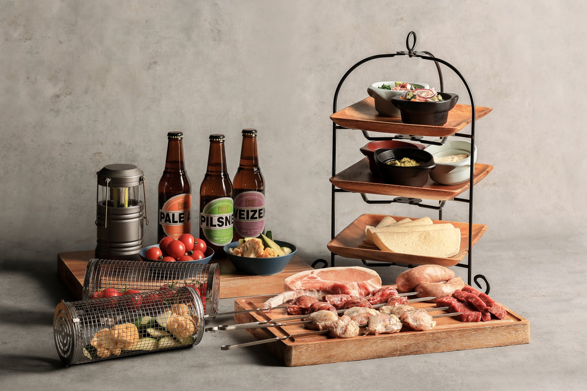 BBQプランでは【肉】【魚介】の2種類の選べるメイン食材をご用意。また、マルシェにはそれぞれの厳選食材もラインナップしておりお好みに合わせたBBQをお楽しみいただけます。