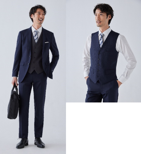 ORIHICAの「ストレッチスーツ」は、ストレッチ性を兼ね備えており、ビジネスシーンでも活躍する機能性の高い1着です。ベストはリバーシブル仕様で、ジャケットと異なる色を表にすれば、より華やかさが増します。入卒園だけでなく、結婚式や2次会など、同じスーツでもぐっと印象を変えることができます。さらに、ベストを外し、2ピーススーツとしても着用することが可能です。1着で何通りもの着こなしができる、着回し力の高いスーツです。