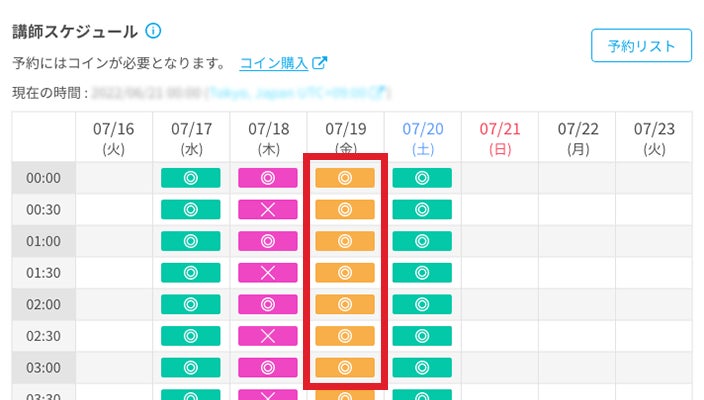 講師詳細ページの「講師スケジュール」よりご希望の日時を選択してください。