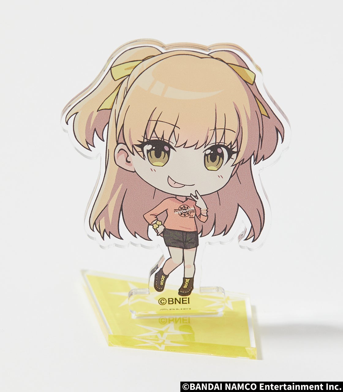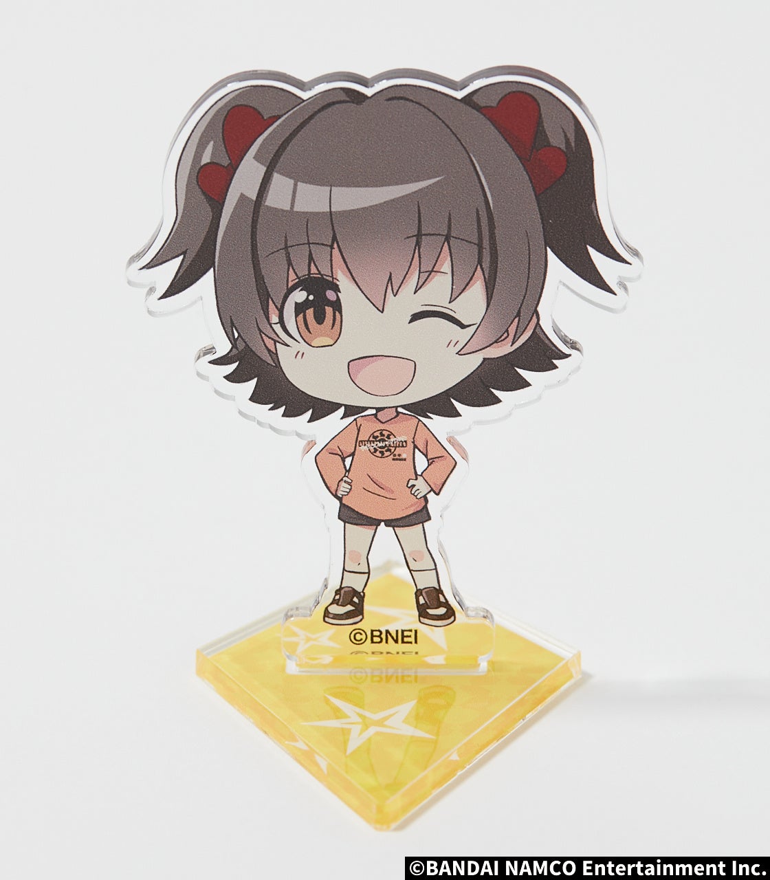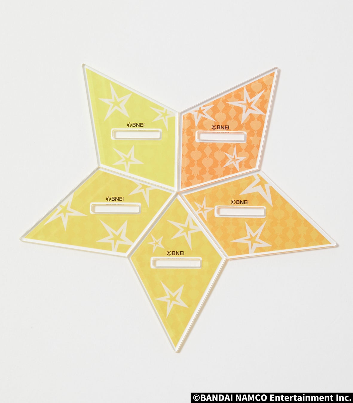 キーホルダーサイズのアクリルスタンドで特殊な形状の台座は5種類を全て組み合わせると星型のフォーメーションに。