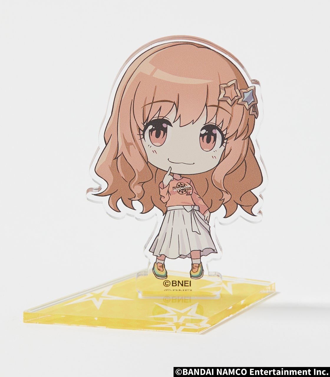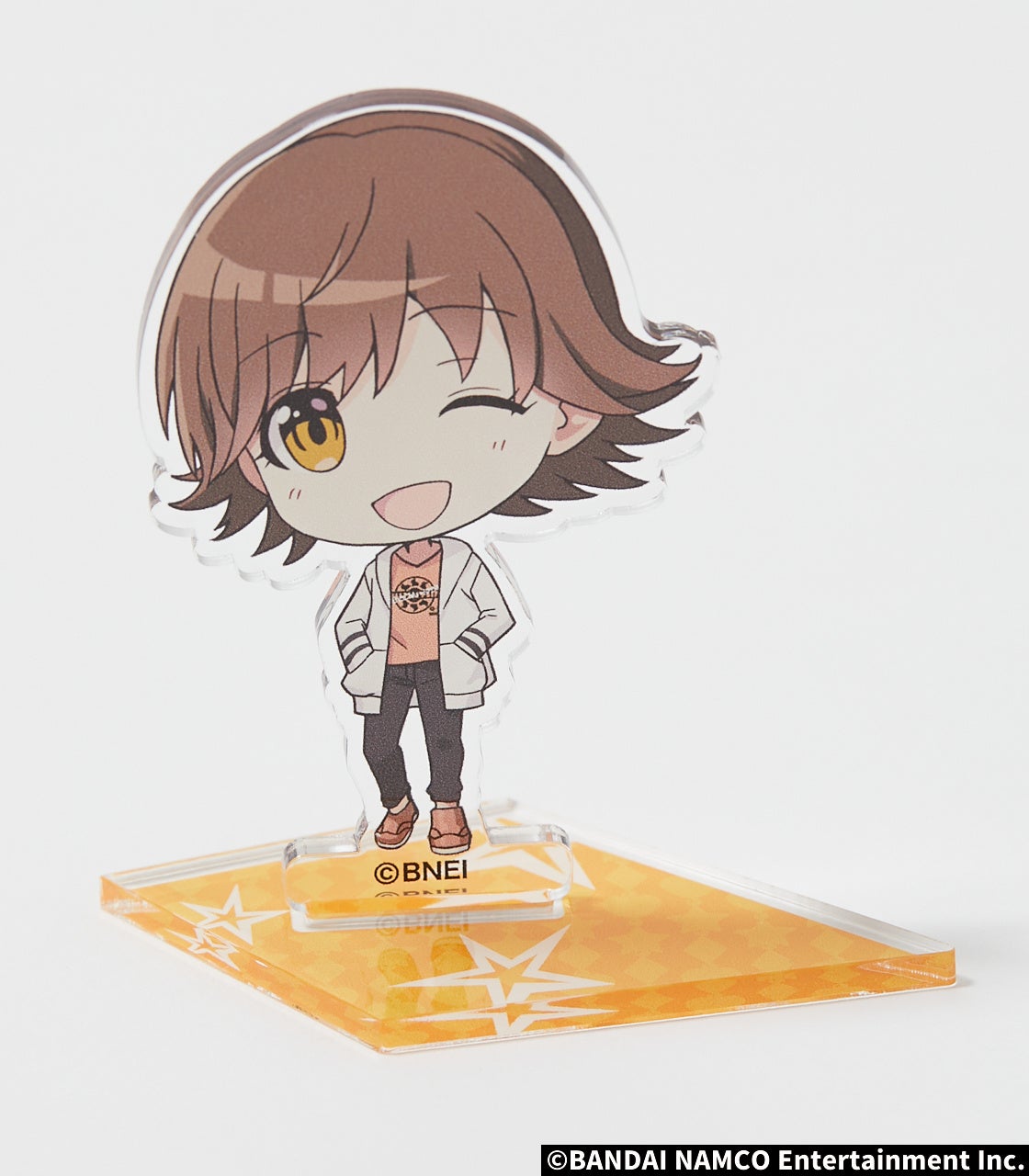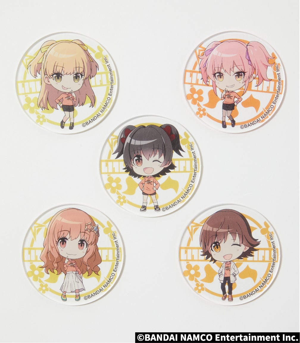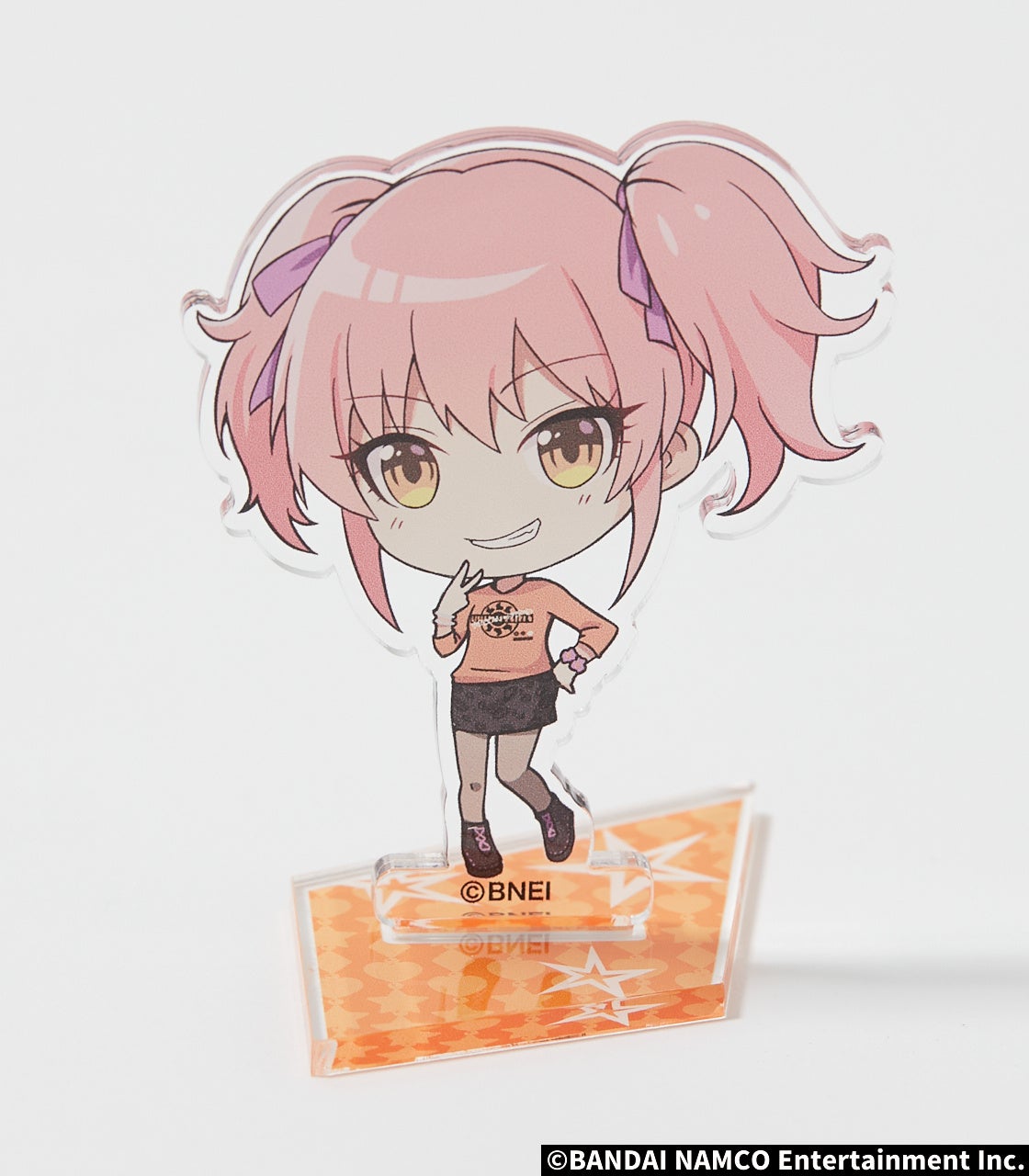 キーホルダーサイズのアクリルスタンドで特殊な形状の台座は5種類を全て組み合わせると星型のフォーメーションに。