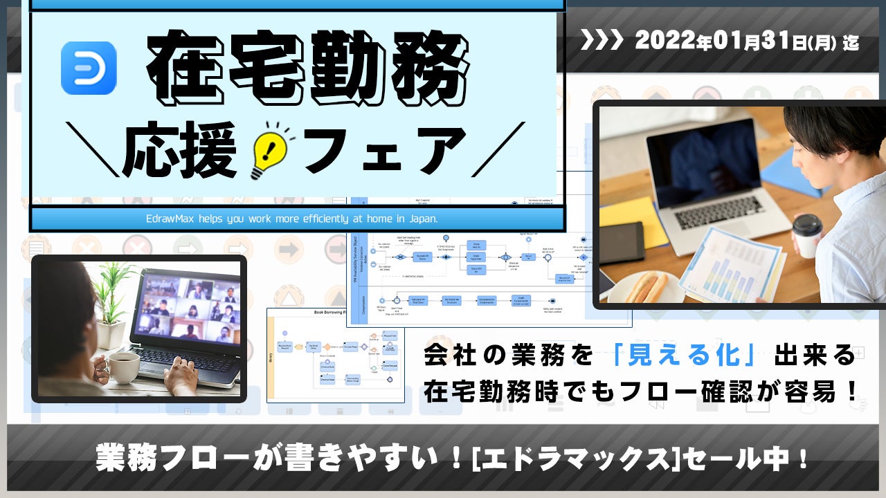在宅ワークやリモートでの業務が日常化した2022年。業務を行う上での「作業工程の見える化」が必要なシーンに合わせ「フローチャートに強い」エドラマックスが在宅勤務応援フェアを開催致します。