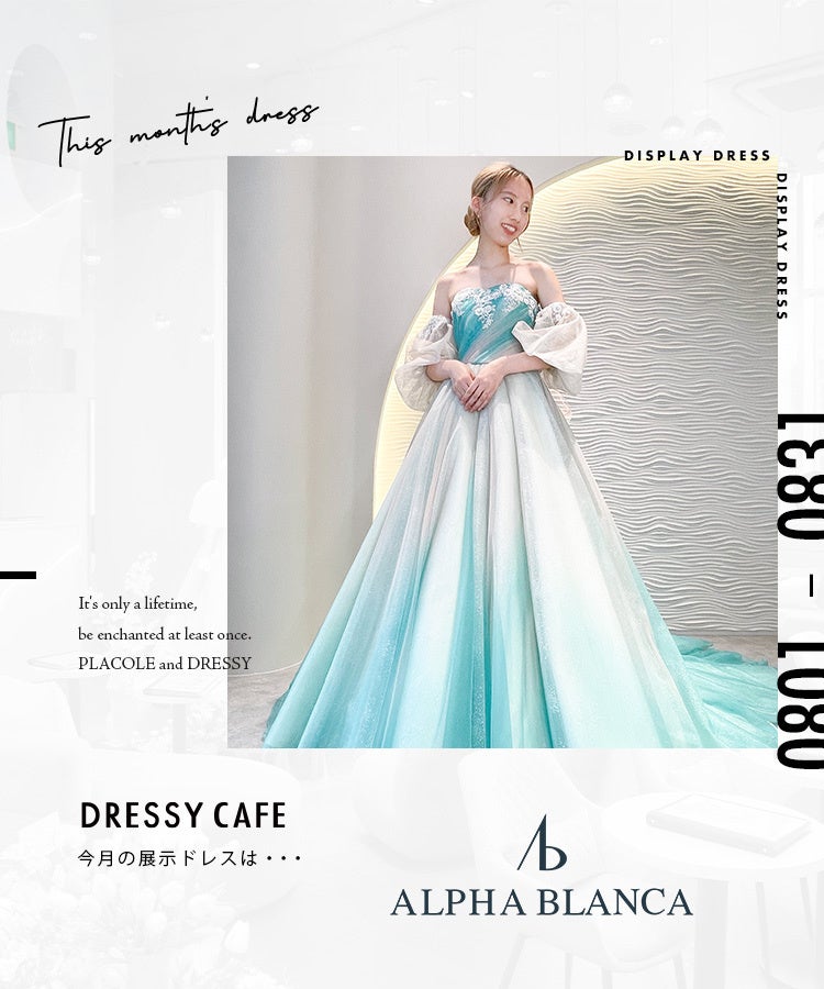 【DRESSYCAFE】8月のディスプレイドレスは「ALPHA BLANCA」のウェディングドレスを期間限定でお届けいたします。