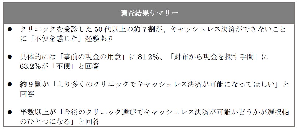 【キャッシュレス派?現金派?クリニック利用者の本音】クリニックを受診した50代以上の7割が、キャッシュレス決済できないことに「不便」を実感