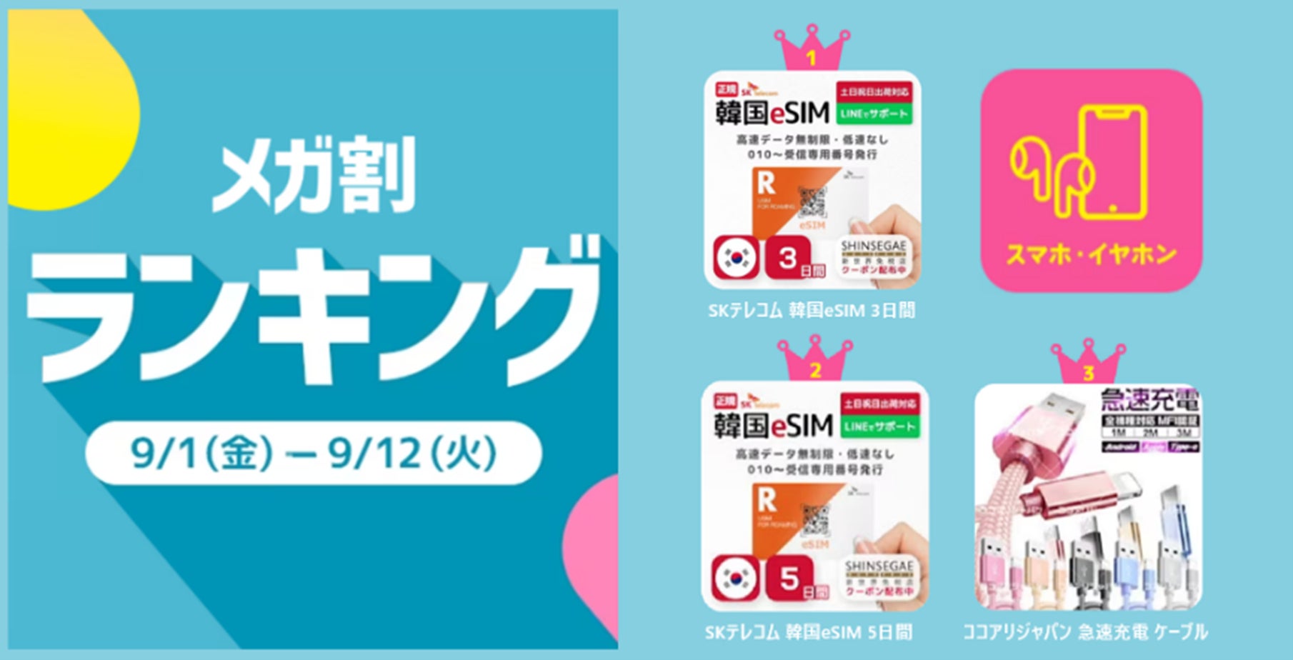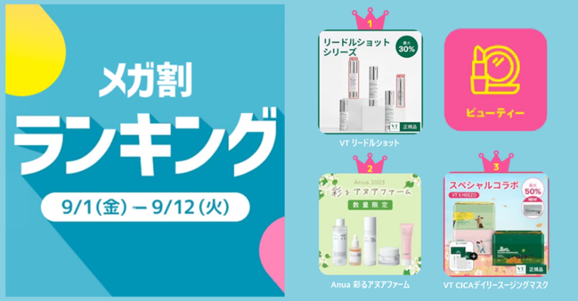メガ割ランキング(期間:2023年9月1日~9月12日)
