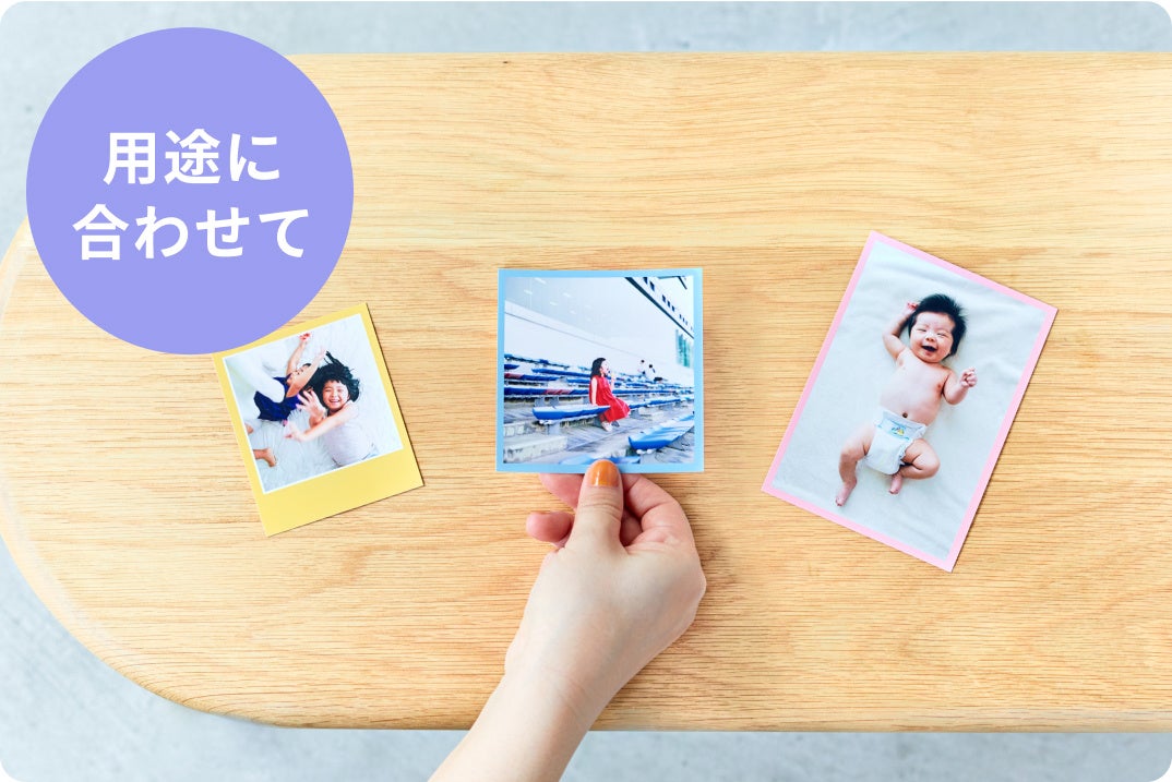 フォトフレーム用「L判サイズ」、アルバム用「ましかくサイズ」など、サイズごとに注文できます。