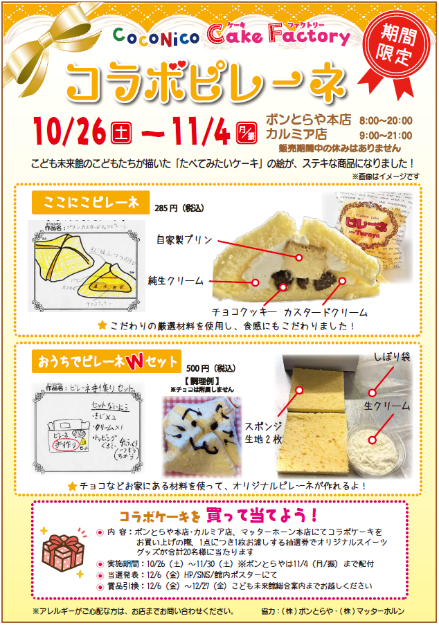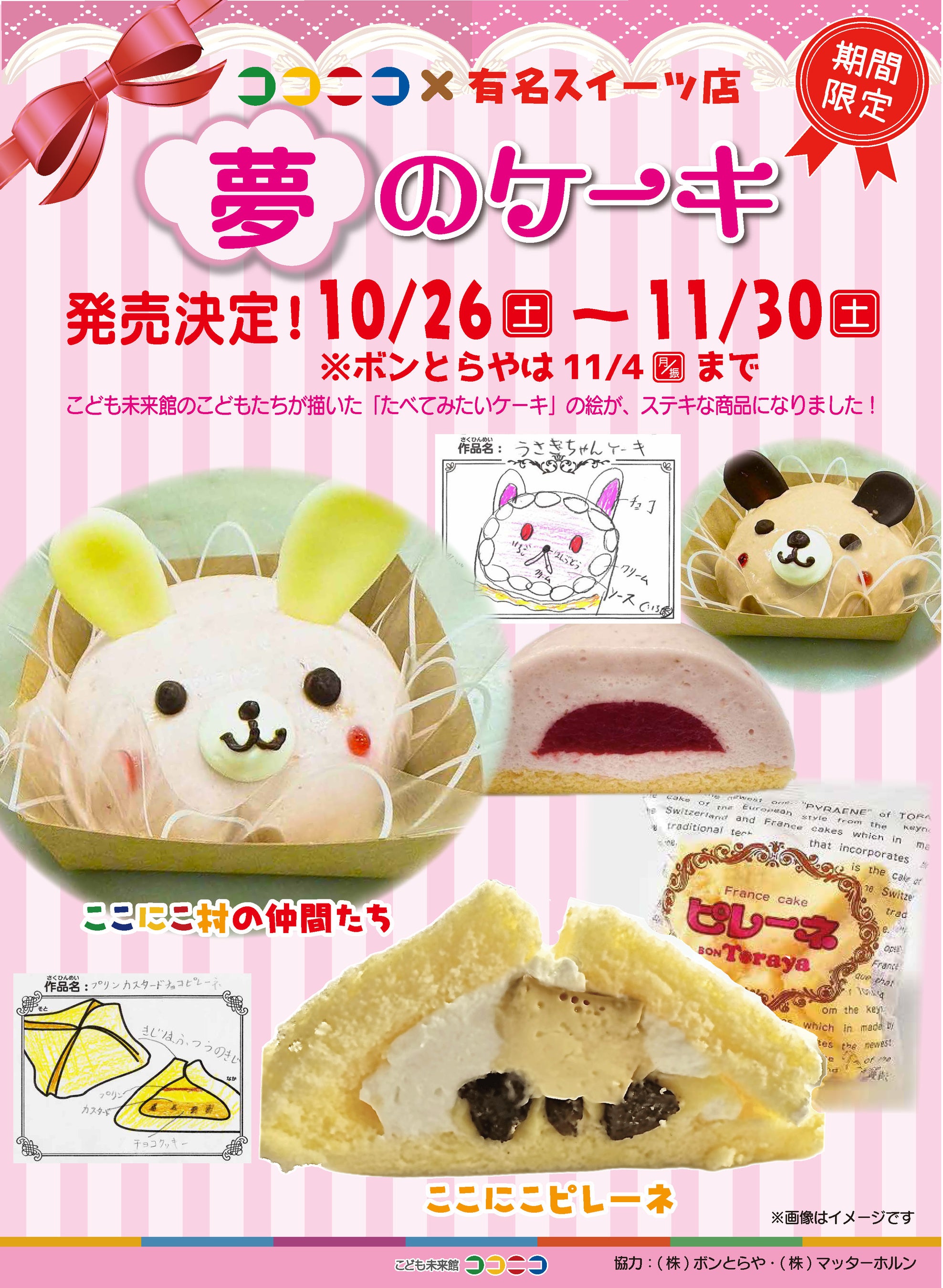 子どもたちが考えた「夢のケーキ」がボンとらや・マッターホーンで商品化!【こども未来館ここにこ企画】10月26日(土)