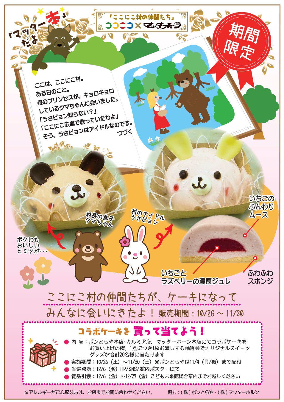 マッターホーン本店では10月26日(土)から11月30日(土)の期間、「ここにこ村の仲間たち」が発売に。