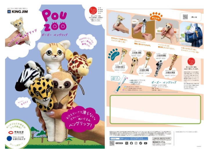 「ポーズー」シリーズは、キングジムが展開する人気のぬいぐるみポーチで、見た目の愛らしさと高い機能性を兼ね備えています。第4弾となる今回は「今までにない学びのグッズ」をテーマに、中央大学の学生が“筆記の悩み”に着目した企画を立案し、京都芸術大学プロダクトデザイン学科の学生がそのデザインをブラッシュアップ。キングジムが商品化することで、学生のアイデアが社会に形となって実現しました。