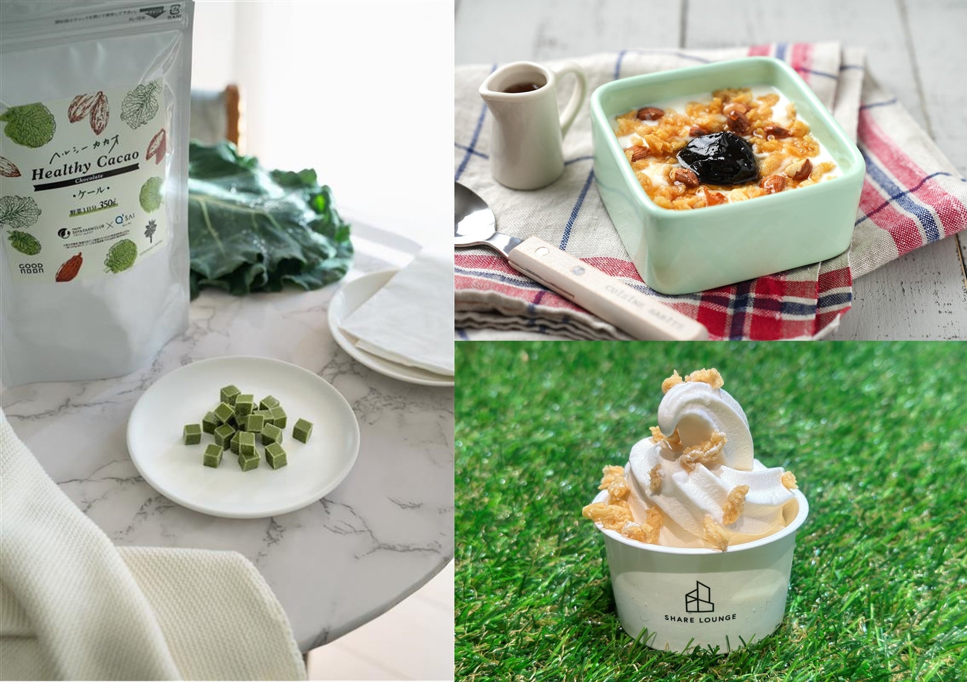 TSUTAYA BOOKSTORE 渋谷サクラステージに併設のSHARE LOUNGEにて、不二製油株式会社のヘルシー食品「プライムソイ」「ヘルシーカカオ ケール」の試食・販売を実施します。お好みでどんな料理にもふりかけて、手軽にたんぱく質が摂れる「プライムソイ」はSHARE LOUNGEのソフトクリームのトッピングにもぴったりです。おやつ感覚で野菜を補給できる「ヘルシーカカオ ケール」は、まるで上質な抹茶チョコレートを思わせる優しい味わいです。ぜひSHARE LOUNGEご利用中にお楽しみください。