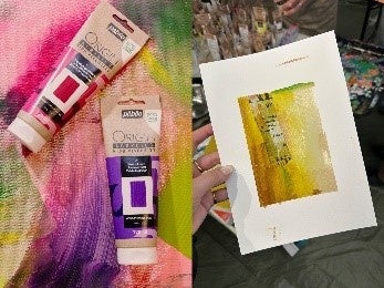 南フランスの絵具メーカー「ペベオ社」と紙メーカー「オリオン」がコラボ! 環境に優しい水性アクリル絵具「オリジン」と、紙製フレームの製造時に出る端材を再利用したサステナブルな活動をする「オリオン」の紙を使い、コラージュを取り入れた抽象画を描くワークショップを開催します。