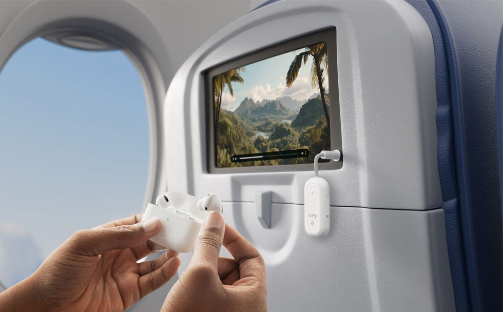 AirFly Pro 2 Deluxeは、Apple AirPodsなどのワイヤレスイヤホンや、あらゆるBluetoothイヤホンに簡単に接続できます。テックポーチや機内持ち込み用バックのサイドポケットに簡単に収まる小型サイズです。機内エンターテイメントを楽しむ以外でも、ジムに行く車の中などでスマートフォンの音楽を再生するなど、どこに行ってもワイヤレスの自由を手に入れます。