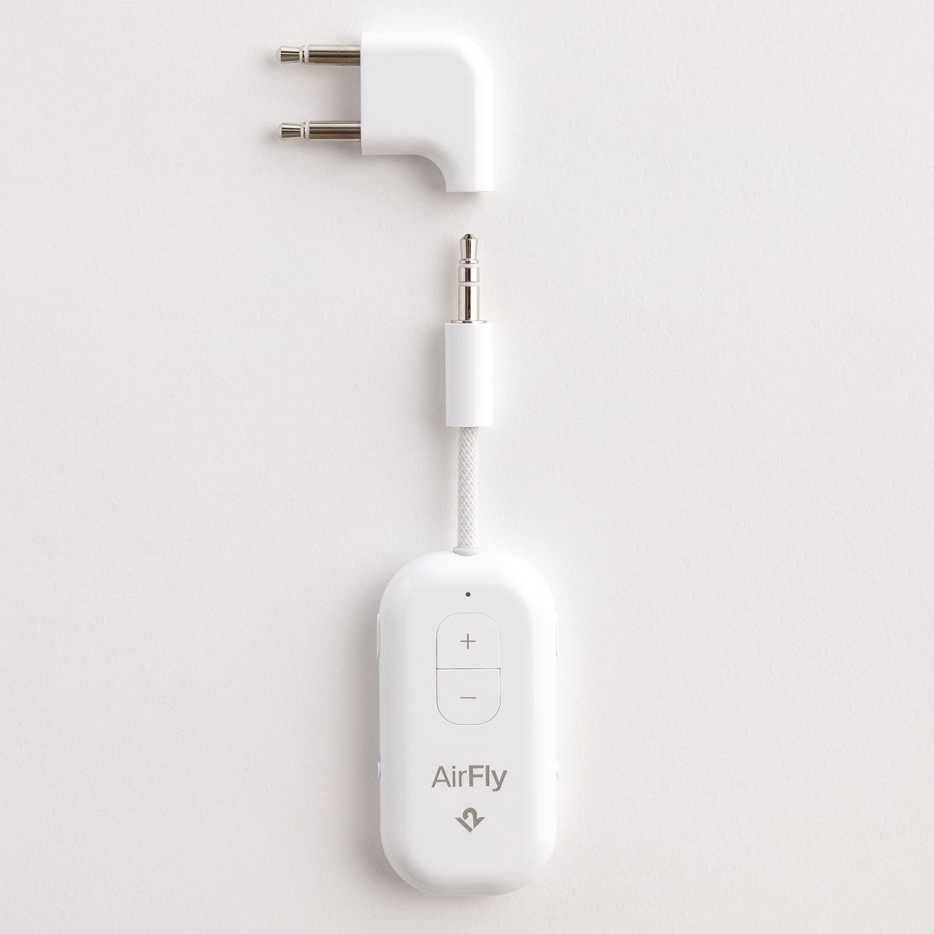AirFly Pro 2 Deluxeには、一部の飛行機が採用しているデュアルジャックでもAirFly Pro 2が使用できるようにデュアルプラグ変換アダプタが付属しています。