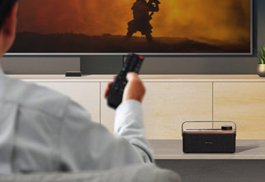 テレビ音声のほか、Bluetooth®接続によるスマートフォンやタブレットの音楽も高音質で楽しめます。テレビ音声とBluetooth®はワンタッチで切り替えが可能です。