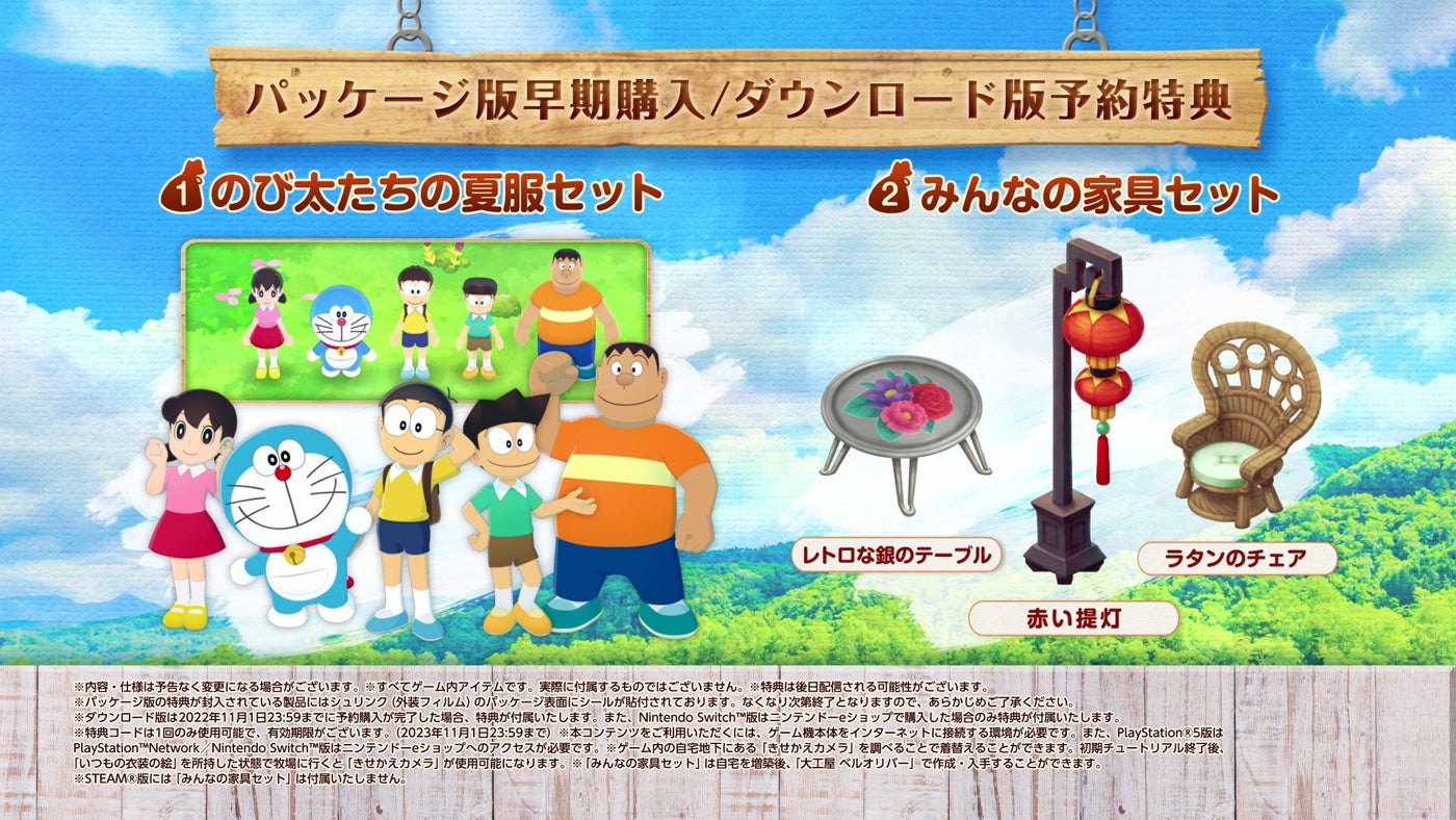 ・DLC衣装・家具・ミニシナリオパック1:のび太たち5人分の衣装、家具8種、ミニシナリオの収録を予定