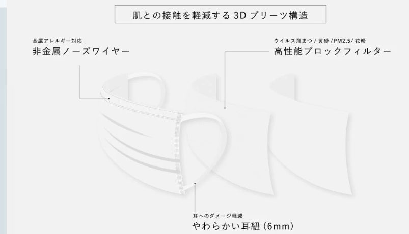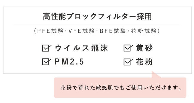 肌にやさしいだけではなく、しっかりウイルスや花粉も防ぎます。