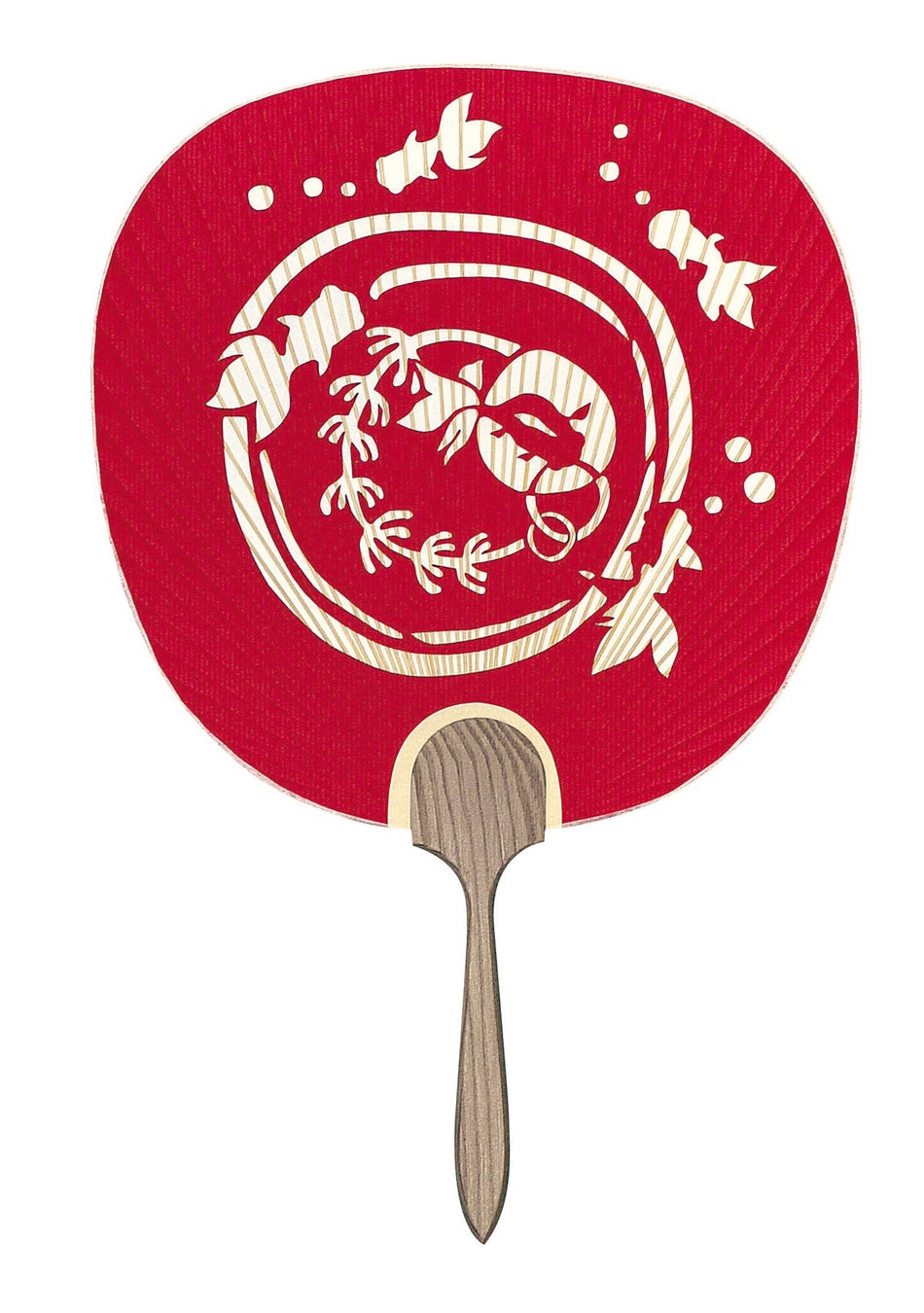 切り抜かれた色和紙をうちわに貼り、絵付け体験ができます。