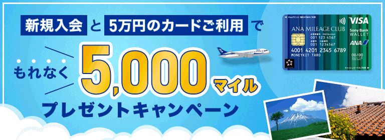 「新規入会と5万円のカードご利用でもれなく5,000マイルプレゼントキャンペーン」実施のお知らせ