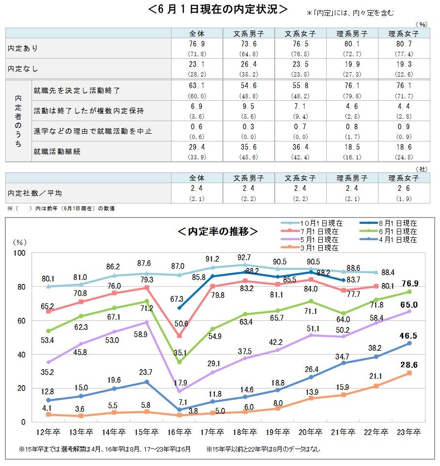 調査対象 : 2023年3月に卒業予定の大学4年生(理系は大学院修士課程2年生含む)