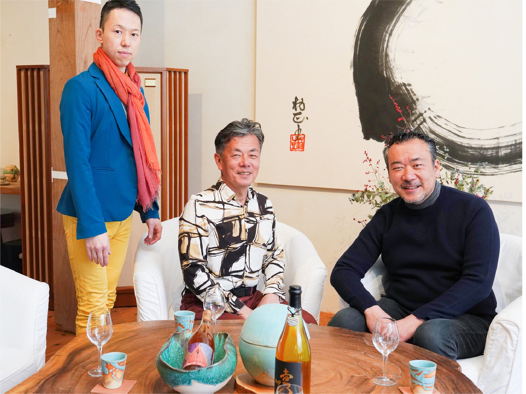 "ワインを熟成させるための壺"の開発プロジェクトには、京都の老舗窯元「嘉祥窯」四代目当主の森岡嘉祥氏(写真右)と、自然派ワインの旗手「ドメーヌヒデ」の渋谷英雄氏(写真中)、キーパーソンであるソムリエ・ KAZU(カズ)氏の知られざる活躍がありました。世界でも類を見ない、ワインのための「呼吸する陶器の壺」を使った新しい日本ワインのカルチャーへの、熱い想いを語ってもらいました。