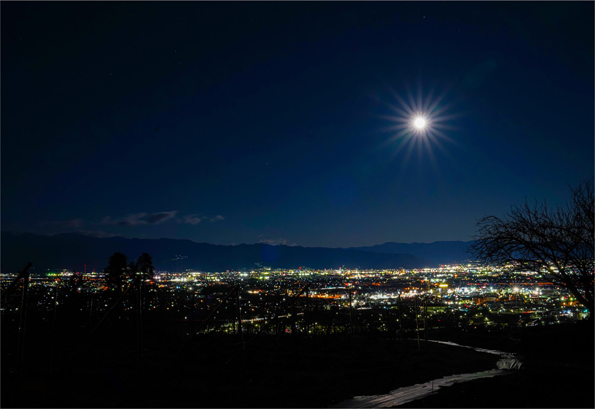甲州ブドウを壺だし作業した、満月の夜 (山梨県南アルプス市:2022 年1月撮影)