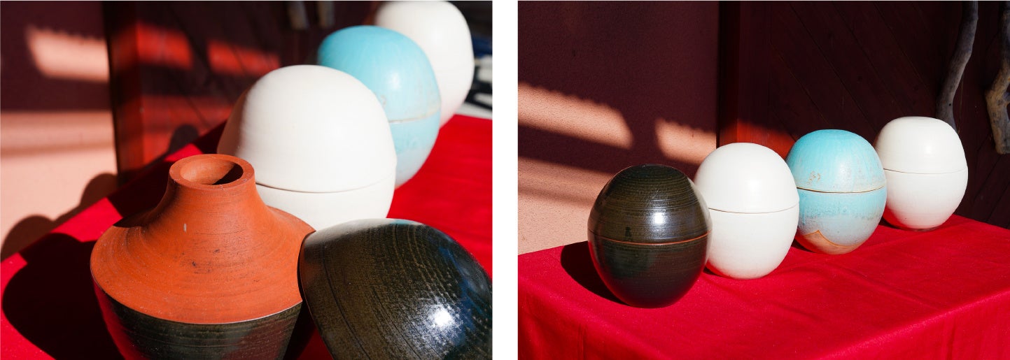 ドメーヌヒデの渋谷英雄氏と、京都清水の地で茶道具を100年以上にわたって創作してきた京焼の窯元「嘉祥窯」四代目当主の森岡嘉祥(もりおかかしょう)氏が共同開発した、美味しい日本ワインを造るための「呼吸する陶器の壺」。前例のない、ワインのための壺を作るために、ワインにとって最善の土、釉薬、焼きのテストとテイスティングを繰り返しながら、日本初となる"ワインを熟成させるための壺"が完成しました。