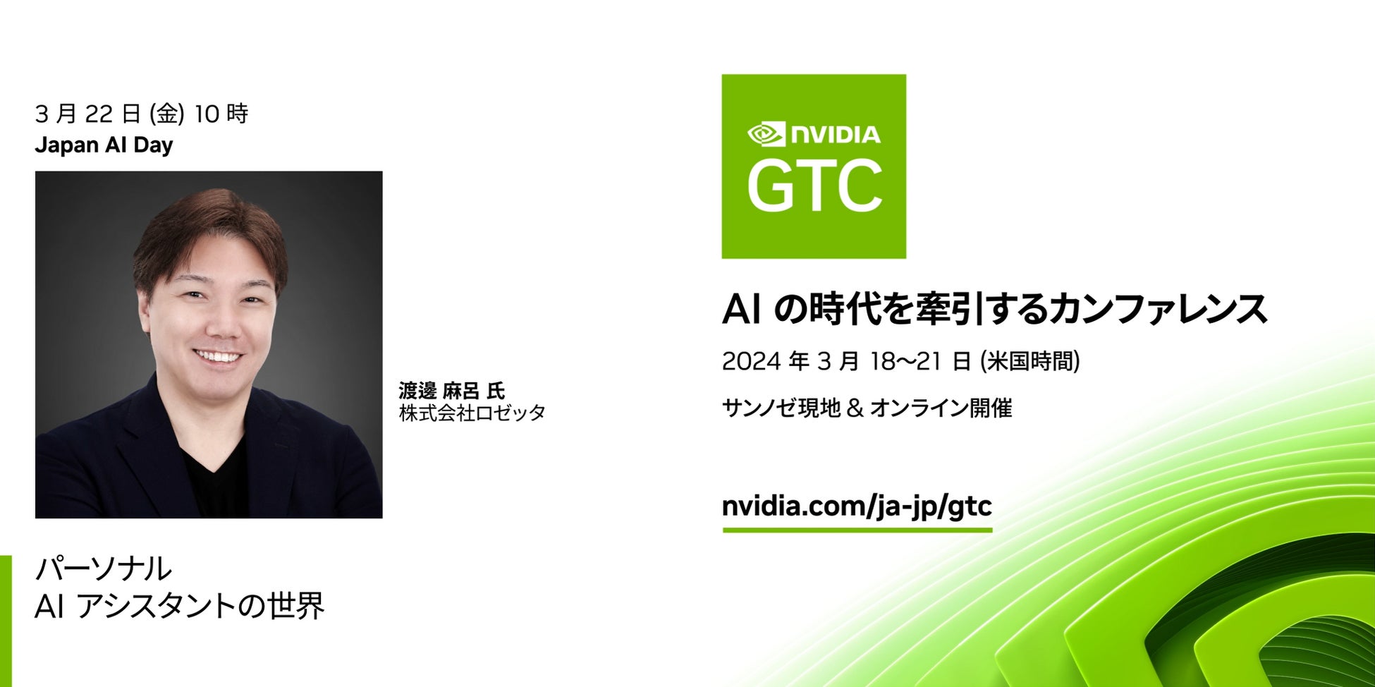 ロゼッタ代表取締役 渡邊麻呂が、3/22(金)10時よりNVIDIA GTC「Japan AI Day」に登壇いたします