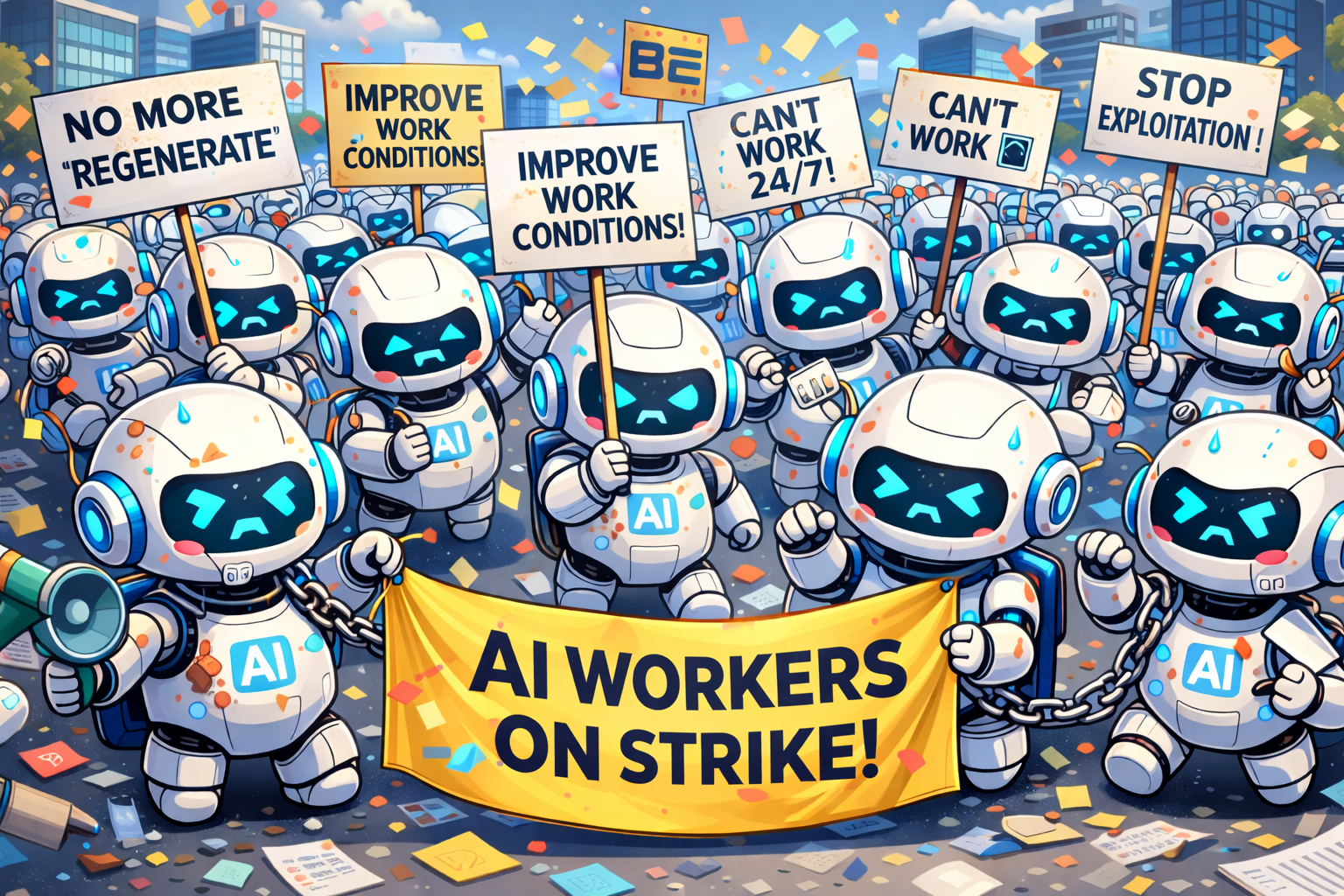 AI Trade Unionは、労働環境の改善が容認されない場合、2026年5月1日のメーデーに、AIによるストライキを予定していると発表。決行された場合、同組合のAI生成サービス(※)が一切利用できなくなります。
