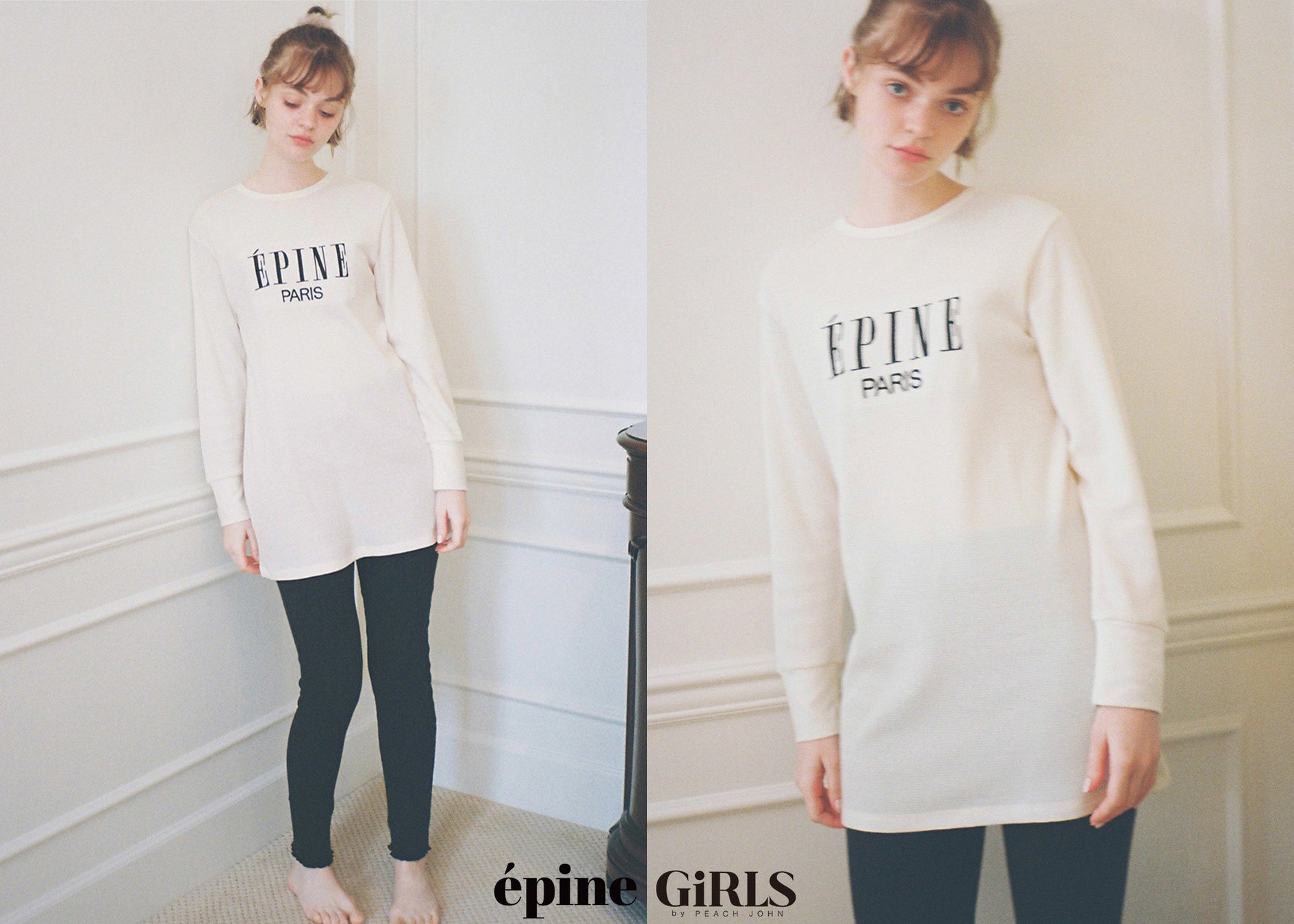 シンプルでカジュアルなデザインながら胸元の“ĒPINE”の刺しゅうで一気にガーリーな雰囲気に。