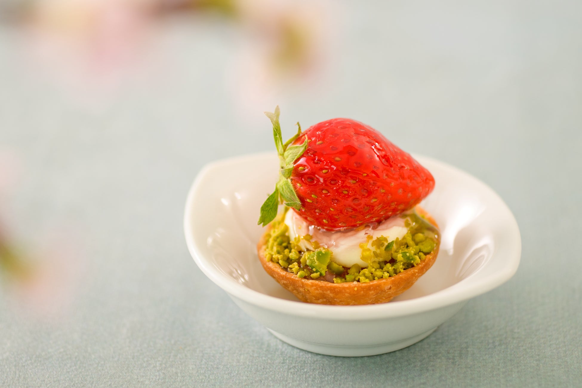 イタリアシチリア産ピスタチオをふんだんに使用したタルトに栃木県産のいちご“とちあいか”を丸ごと1粒使った贅沢なタルト。ピスタチオのコクと“とちあいか”の甘酸っぱさのバランスのとれた1品に仕上げました。