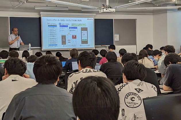 学生たちにとっても身近なスマートフォンに起こりうる脅威と、ユーザに安心を提供するサービスが具体的にどう開発されているか興味津々の様子です。