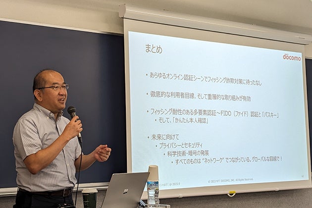 まずは、最近のフィッシング詐欺の事例や仕組み、NTTドコモにおける対策についてお話しいただきました。
