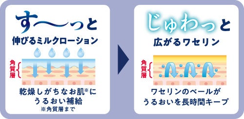 体温でワセリンが溶けて伸びが良く、塗り広げ直後から浸透※後に被膜感が際立つテクスチャー。店頭でぜひ実際の感触をお試しください。