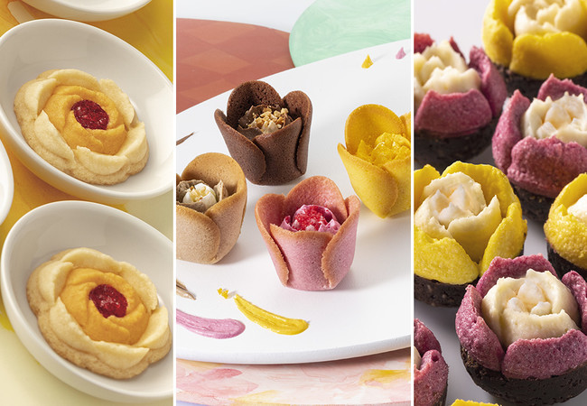 最も人気の「チューリップローズ」は、ラングドシャのチューリップの中にホイップショコラのローズを咲かせた代表作。ベリー・パッションマンゴー・キャラメルナッツに、季節限定モンブランの4味が楽しめます。オレンジ&バター香る花びらにラズベリーコンフィチュールの朝露をのせた「ワイルドオレンジローズ」。ころんと可愛いベイクドスイーツ「ローズガーデン」は、カシスバニラとカルダモンシトロンの2味が参加です。TOKYOチューリップローズが贈る“可愛すぎるスイーツの花園”を思いっきり楽しんで!