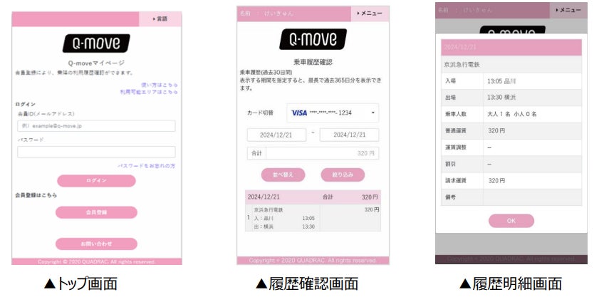 QUADRAC株式会社のQ‐move サイトにアクセスし、「マイページ」の会員登録手続きを完了すると確認が 可能です。Q‐move サイト:https://q‐move.info/