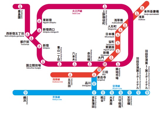 利用可能駅は、都営地下鉄浅草線、三田線、大江戸線の26駅、京急線の10駅で、お客様ご自身の お持ちのタッチ決済対応のカードや同カードが設定されたスマートフォン等を自動改札機等にタッチすることで スムーズにご乗車いただけます。