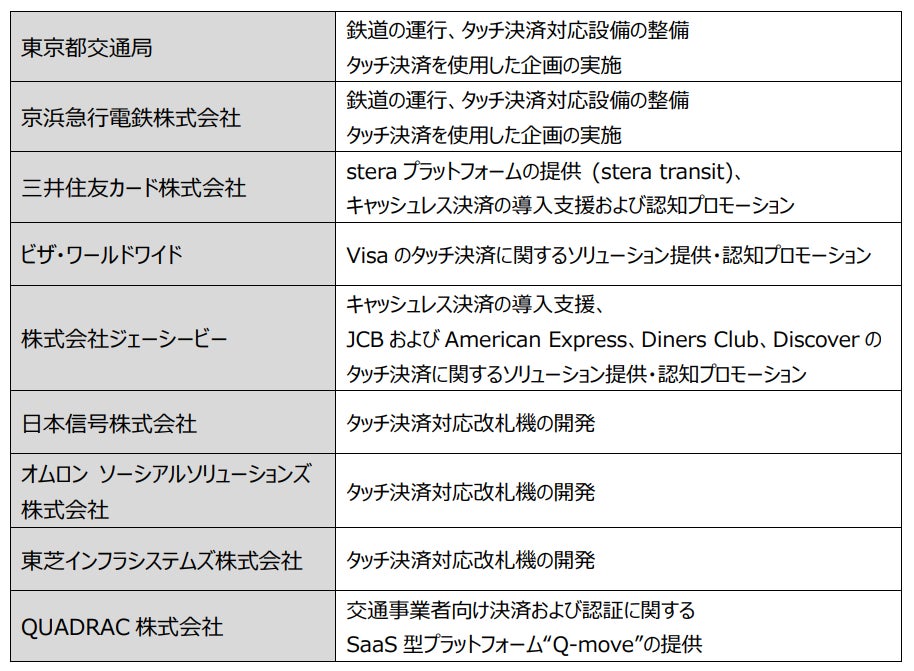 東京都交通局(東京都新宿区、交通局長:久我 英男)、京浜急行電鉄株式会社(本社:横浜市西区、取締役社長:川俣 幸宏、以下 京急電鉄)、三井住友カード株式会社(本社:東京都江東区、代表取締役社長:大西 幸彦、以下 三井住友カード)、ビザ・ワールドワイド・ジャパン株式会社(本社:東京都千代田区、代表取締役社長:シータン・キトニー)、株式会社ジェーシービー(本社:東京都港区、代表取締役兼執行役員社長:二重 孝好)、日本信号株式会社(本社:東京都千代田区、代表取締役社長:塚本 英彦)、オムロン ソーシアルソリューションズ株式会社(本社:東京都港区、代表取締役社長:四方 克弘)、東芝インフラシステムズ株式会社(本社:神奈川県川崎市、代表取締役社長:島田 太郎)、QUADRAC株式会社(本社:東京都港区、代表取締役社長:高田 昌幸)は、2024年12月21日(土)から、三井住友カードが提供する公共交通機関向けソリューション「stera(ステラ) transit(トランジット)」を活用したタッチ決済対応のカード(クレジット・デビット・プリペイド)や、同カードが設定されたスマートフォン等による乗車サービスに関する実証実験を開始いたします。本実証実験では2024年5月に発表したとおり、都営地下鉄と京急電鉄が連携し、クレジットカードやデビットカード等のタッチ決済による事業者間の相互利用が可能となります。