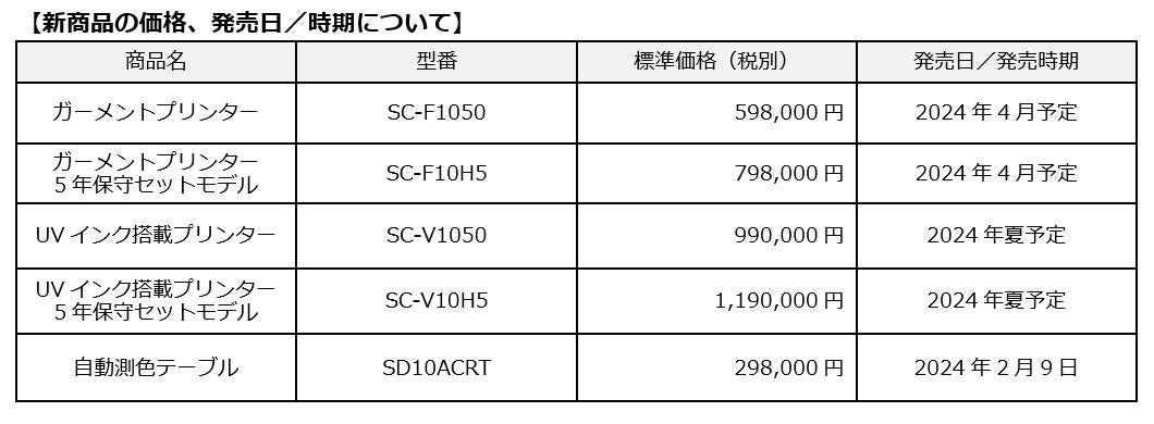 『SC-F1050』の販売台数は、新商品を含むガーメントプリンター全体で今後1年間に約200台を、『SC-V1050』の販売台数は、新商品を含むUVインク搭載プリンター全体で今後1年間に約300台を予定しています。