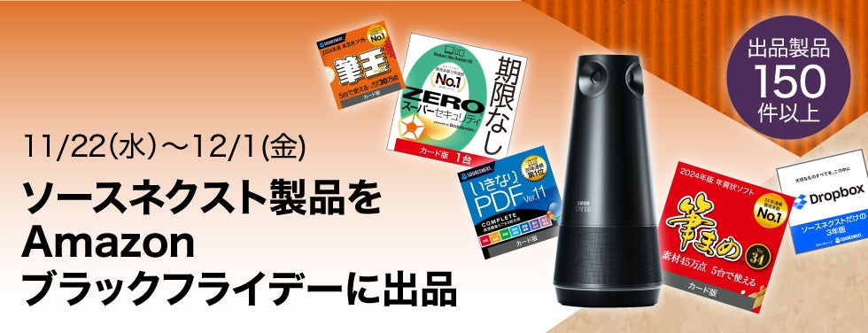 ソースネクスト株式会社(本社:東京都港区、代表取締役社長:小嶋 智彰)は、2023年11月24日(金)0時から12月1日(金)23時59分まで開催される「Amazon ブラックフライデー」に、弊社の人気製品150製品以上を最大67%割引で提供することをお知らせいたします。