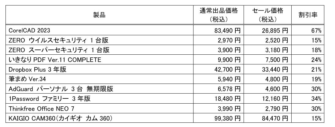 さらに、コーレルのCADソフト「CorelCAD 2023」は最大割引率となる67%引でお届けします。