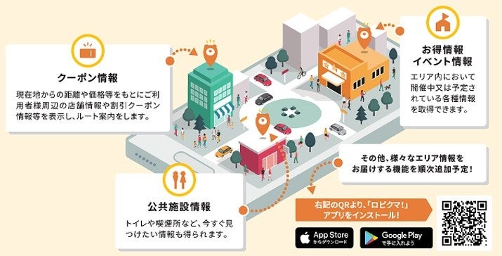 「ロピクマ!」は、現在地から周辺の店舗情報やクーポン情報などを地図上に掲載しルート案内表示をするほか、トイレや喫煙所といった公共施設やイベントなどの様々なエリア情報※1を確認できる地図クーポンサイトです。本サイトでは、同社が運営する、業種複合型の施設・店舗検索・予約ポータルサイト「locaLPlace (ローカルプレイス)」との連動により、現在7.2万件の店舗情報を掲載しています。