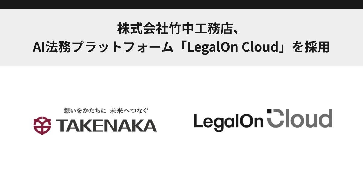 株式会社LegalOn Technologies(本社:東京都渋谷区、代表:代表取締役 執行役員・CEO 角田 望)は、「最良の作品を世に遺し、社会に貢献する」を経営理念に掲げ、東京タワーや東京ドームなど様々な建築物を手掛けている株式会社竹中工務店(本社:大阪府大阪市、代表:取締役社長 佐々木 正人)に、法務業務全体を包括的に支援するAI法務プラットフォーム「LegalOn Cloud」( https://www.legalon-cloud.com/ )を導入いただいたことをお知らせします。