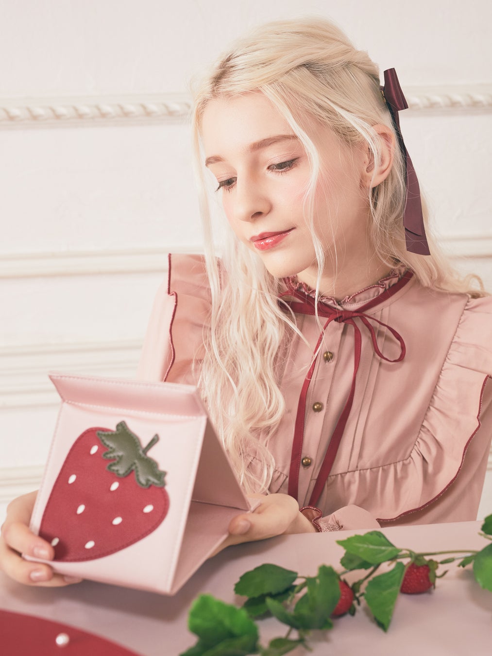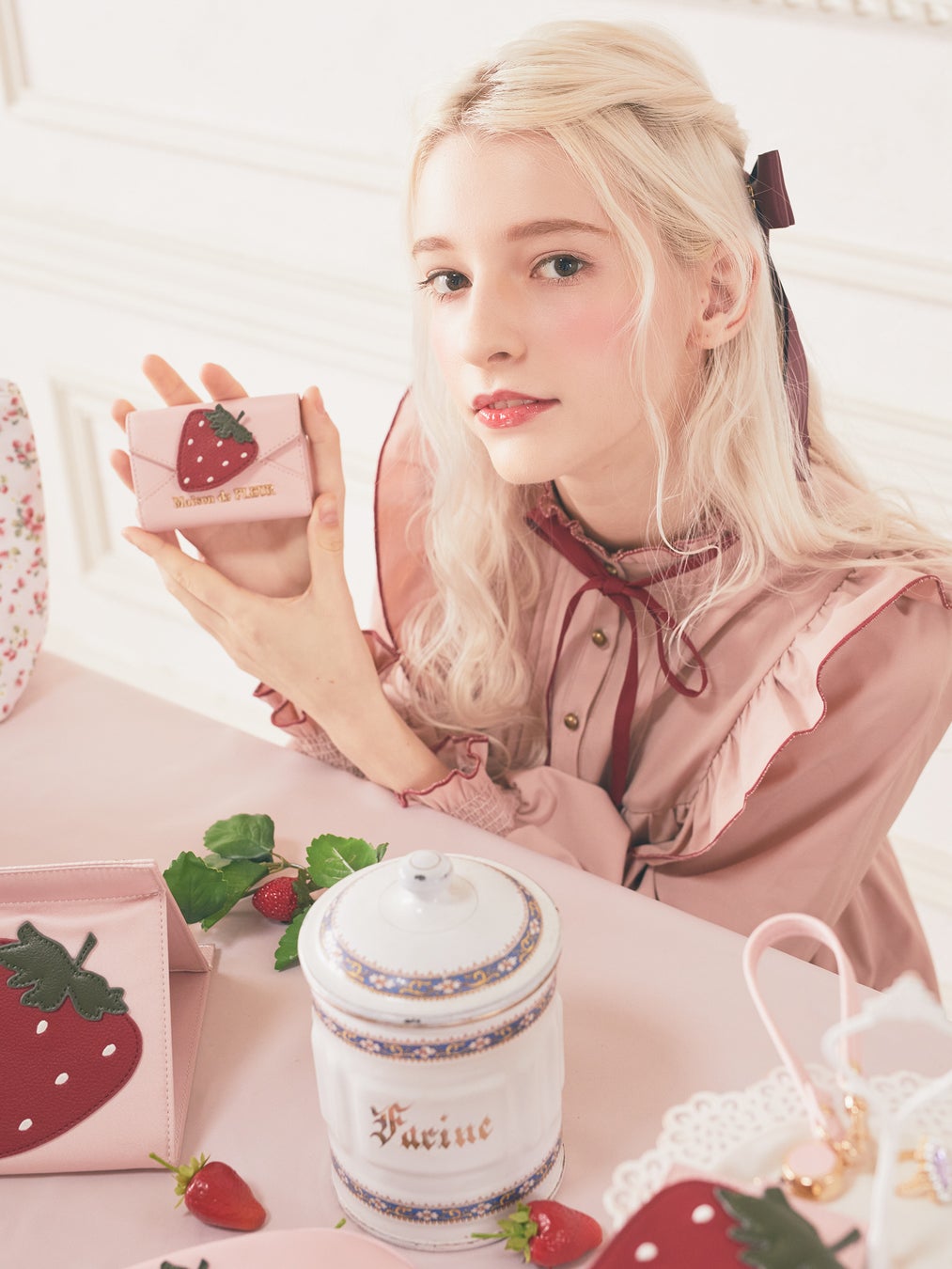 いちごのモチーフを大胆に取り入れたシリーズでは、いちご型のショルダーバッグが登場。へたはリボンに見立て、種はパールを施した、Maison de FLEURらしいキュートなアイテムに仕上げました。ボディのカラーには、美味しそうに完熟したイチゴの赤色を表現し、上品さをプラス。ショルダーはもちろん、ハンドバッグとしても使える2way仕様です。