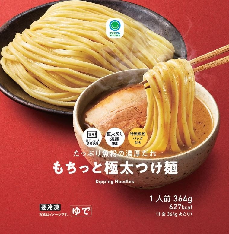 株式会社ファミリーマート(本社:東京都港区、代表取締役社長:細見研介)は、昨年から取組んでいる5つのキーワードの1つである、「もっと美味しく」の一環として、2022年6月28日(火)から、ファミマルKITCHENの冷凍食品「たっぷり魚粉の濃厚だれ もちっと極太つけ麺」249円(税込み268円)を発売いたします。