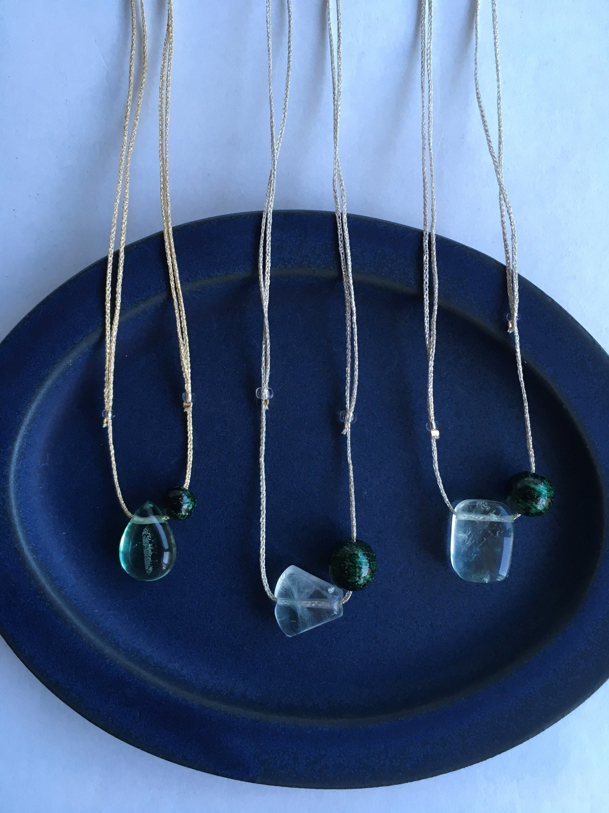 漆玉と天然石の個性を尊重しながらぴったりと合うペアを丁寧に選び組み合わせたネックレス。