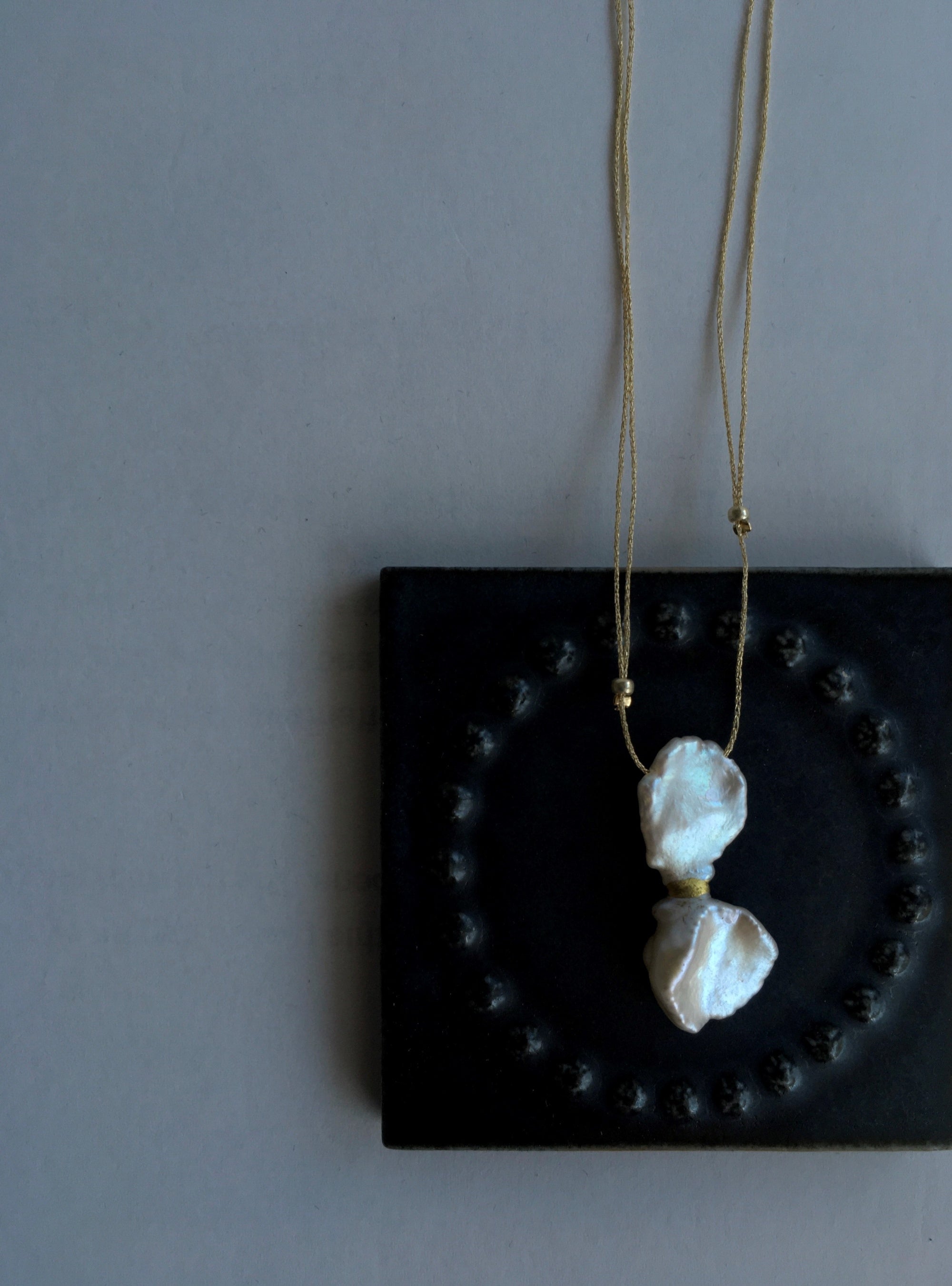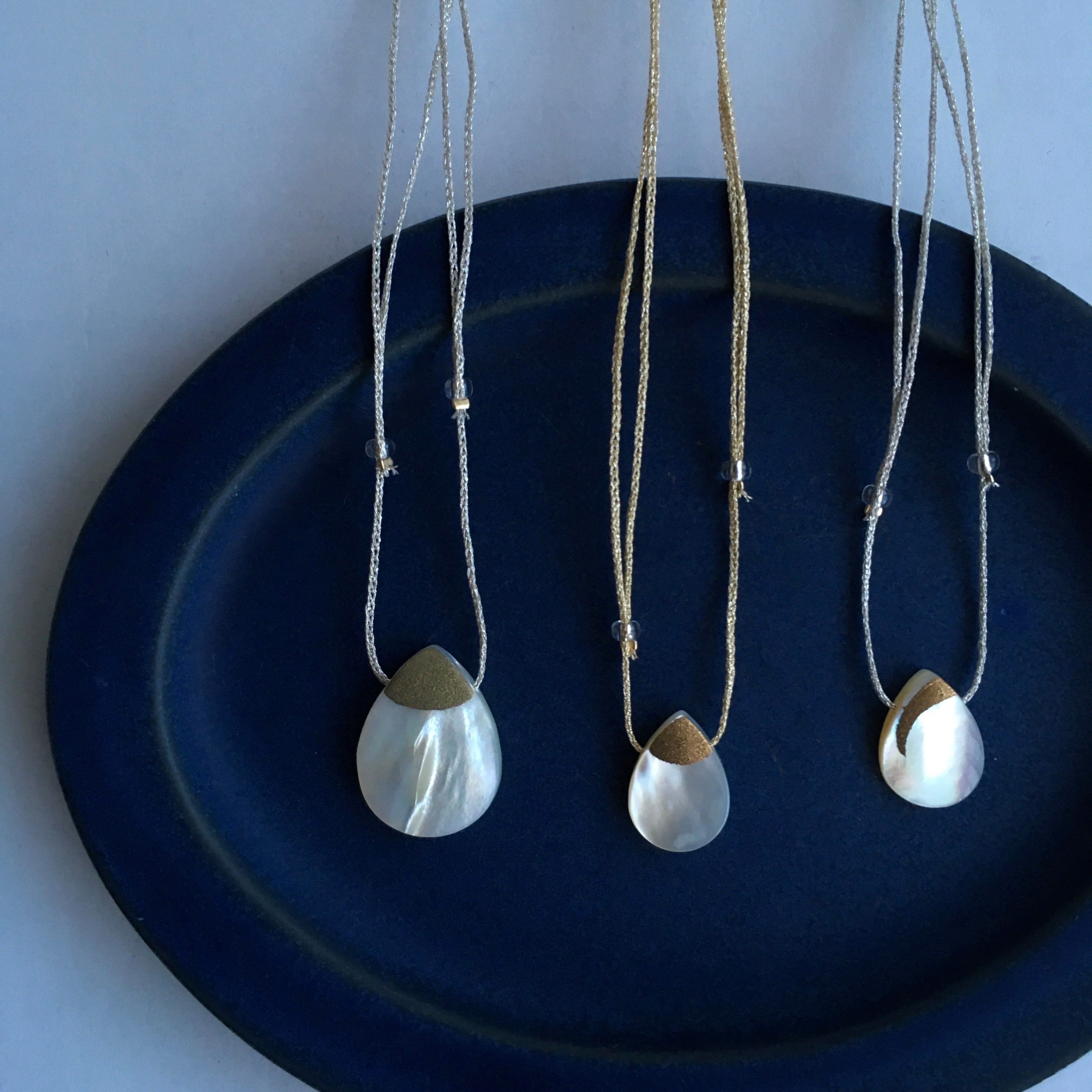 人肌に馴染む上品な輝きの白蝶貝を厳選し、丁寧に蒔絵を施したネックレス。